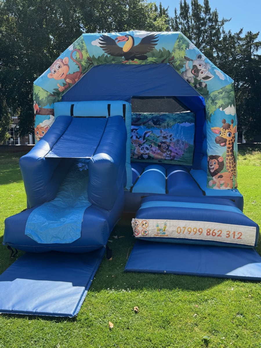 Welcome to the Jungle Adventure Extravaganza brought to you by M&M Party Bouncers! Transform your event into a wild and vibrant celebration with our Jungle Themed Bouncy Castle with Slide, available for hire in Darlington & Surrounding Areas.